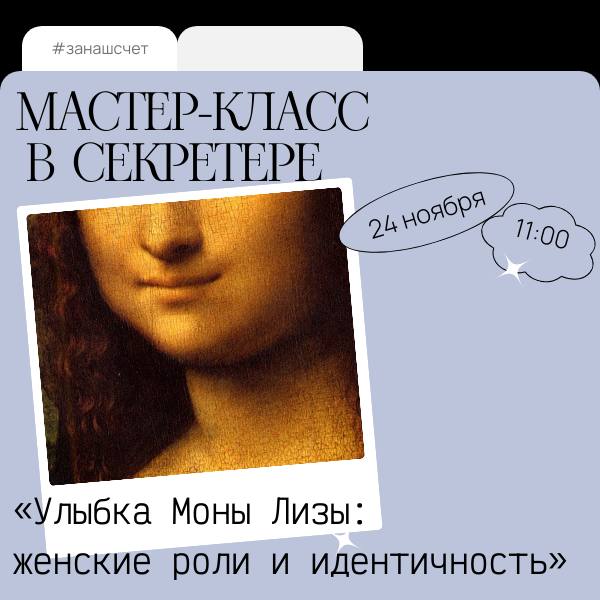 24 ноября в 11:00 приглашаем вас на мастер-класс на тему: «Улыбка Моны Лизы: женские роли и идентичность»