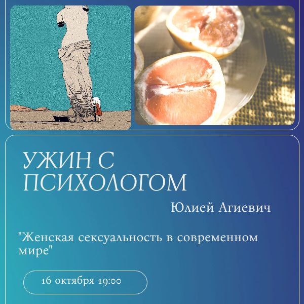 P.S. Ужины с психологом это новый формат, где можно затронуть волнующие темы. Следующий ужин мы посвятим теме женской сексуальности, куда также зовем представителей обоих полов.