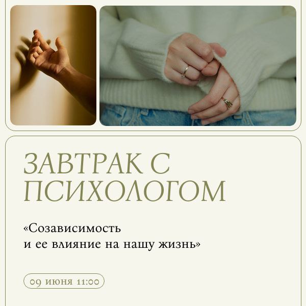 Завтрак пройдет в неформальной обстановке, мы разберем примеры созависимых отношений в литературе и кино. Также поговорим о том, как различаются созависимость и эмоциональная зависимость.